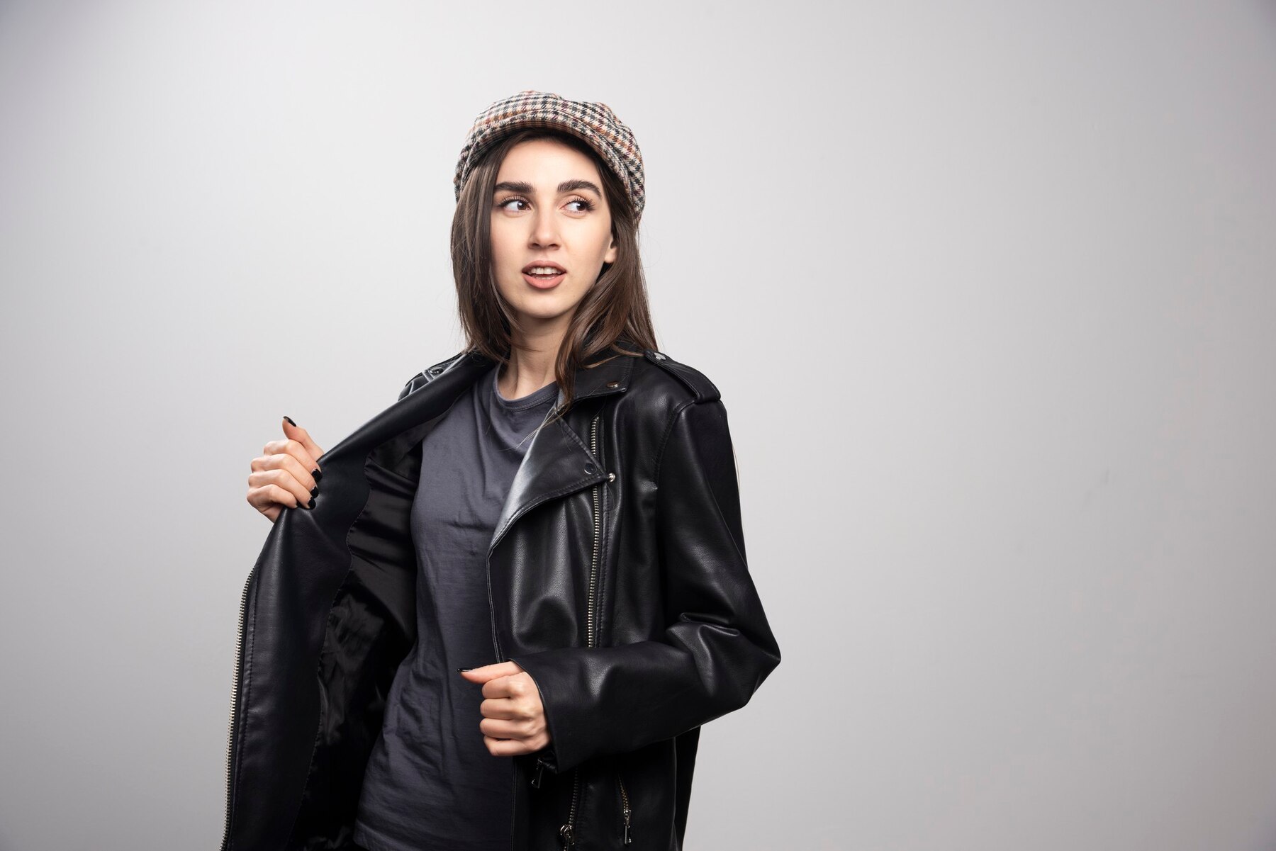 A bold and timeless Women’s Black Leather Jacket, offering a sleek, edgy look. Perfect for layering over casual or dressier outfits for a sophisticated, rebellious touch.