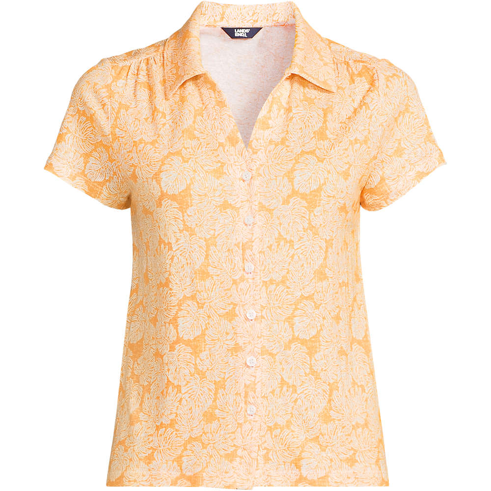 Women’s Linen Blend Short Sleeve Button Front Polo Top